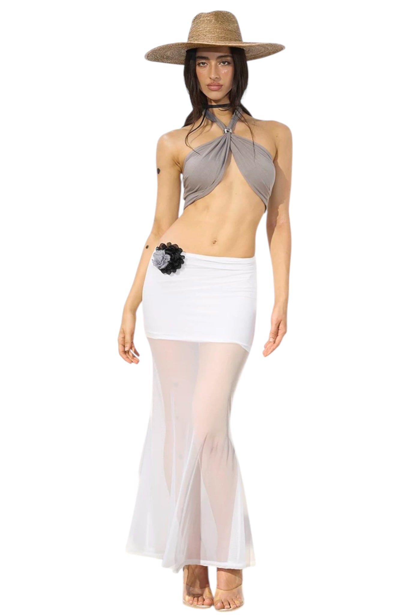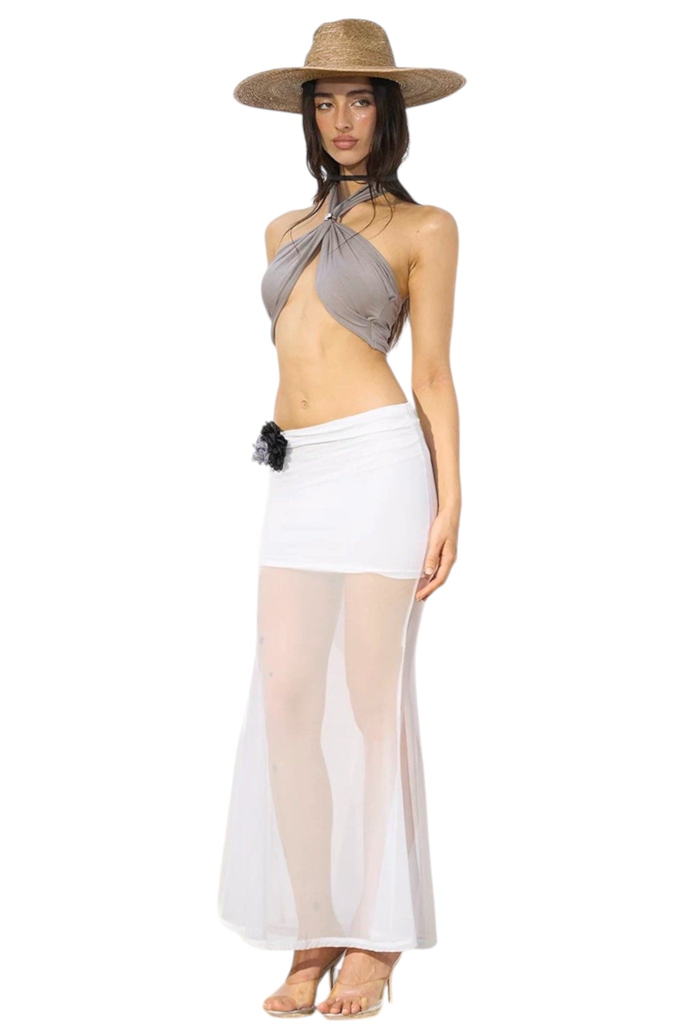 Experience effortless style and comfort with our MAEVE TOP. Its one-piece cut with oblique elasticity creates a halter neck + chest cross structure, while the matte metal buckle allows for adjustable and customizable deep V shapes. Stay stylish and secure with this essential addition to any wardrobe.