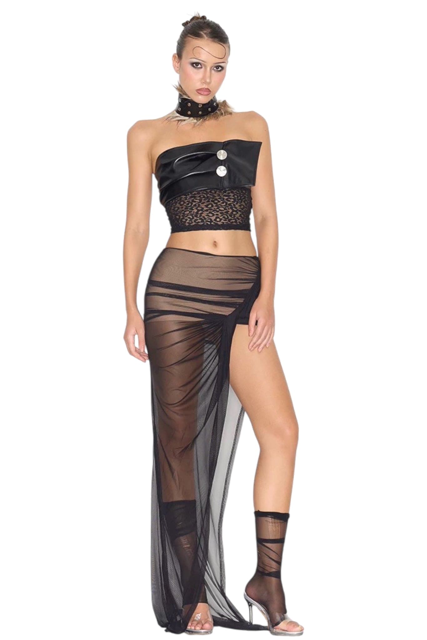A fierce and sensual statement piece: black leather, metallic eyelets, and a fur trim bursting out for a wild, untamed effect. Versatile and transformative — wear it as a choker, bracelet, or anklet.
