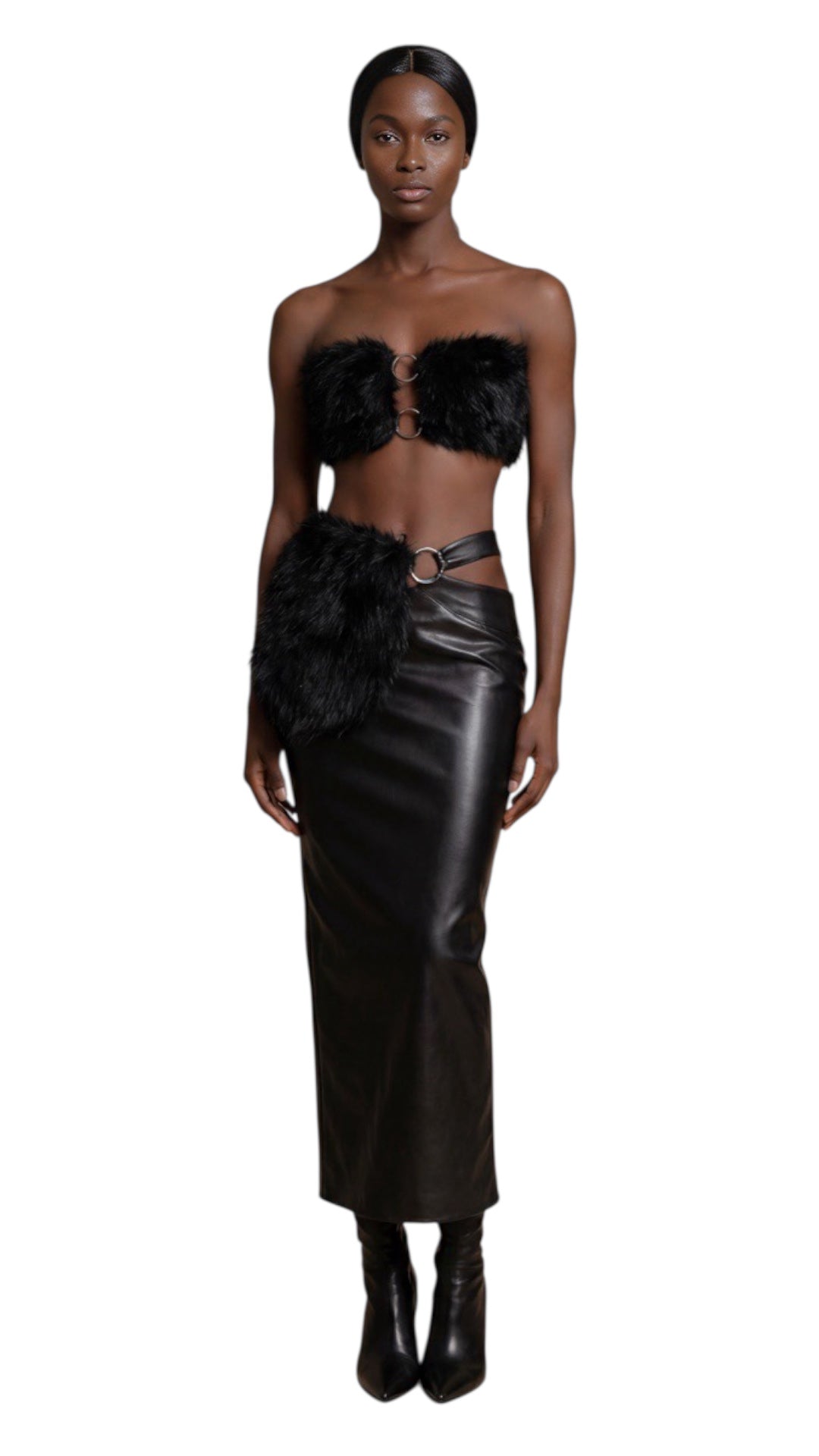 Plush texture, fitted shape and bold O-ring hardware for a clean but dangerous finish.